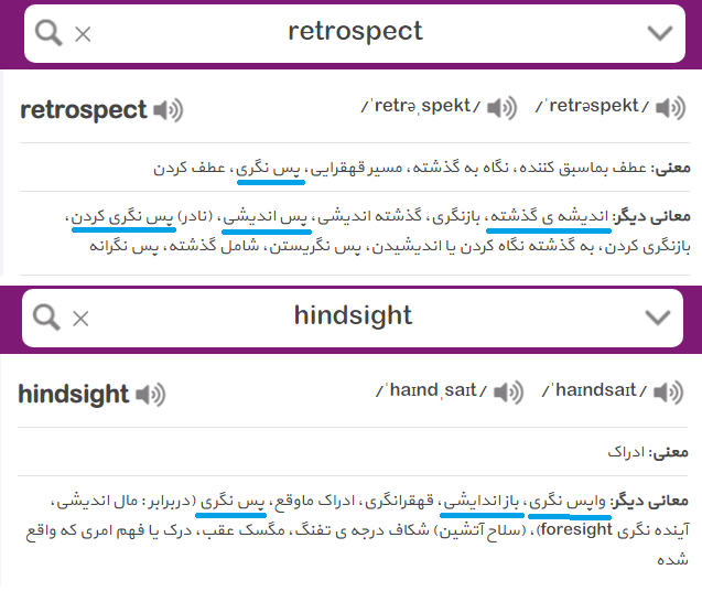 شباهت و تفاوت معنی hindsight و معنی retrospect